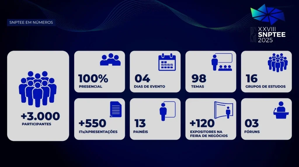 A grandiosidade do SNPTEE pode ser traduzida em números que refletem seu impacto e abrangência. A XXVIII edição, 100% presencial, sem dúvida promete ser uma das mais expressivas da história, com uma estrutura pensada para a máxima absorção de conhecimento e networking.